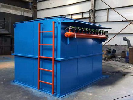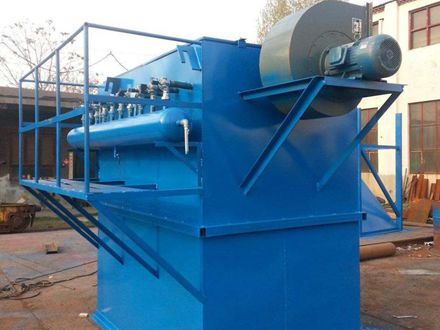 含尘气体由进风道进入灰斗,粗尘粒直接落入灰斗底部,细尘粒随气流转折向上进入中、下箱体,粉尘积附在滤袋外表面,过滤后的气体进入上箱体至净气集合管-排风道,经排风机排至大气。 清灰过程是先切断该室的净气出口风道,使该室的布袋处于无气流通过的状态(分室停风清灰)。然后开启脉冲阀用压缩空气进行脉冲喷吹清灰,切断阀关闭时间足以保证在喷吹后从滤袋上剥离的粉尘沉降至灰斗,避免了粉尘在脱离滤袋表面后又随气流附集到相邻滤袋表面的现象,使滤袋清灰 ,并由可编程序脉冲控制仪对排气阀、脉冲阀及卸灰阀等进行全自动控制。